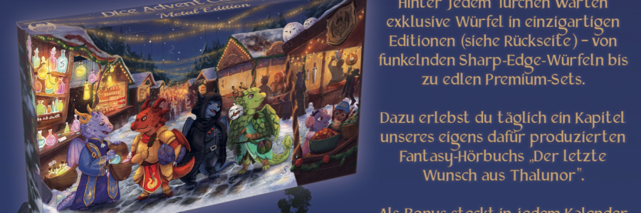 Und so präsentieren wir euch in Kooperation mit der Oberpfälzer Firma World of Dice einen ganz besonderen Adventskalender!
